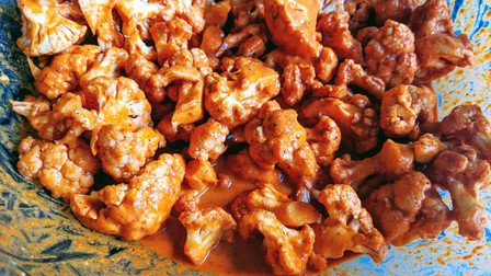 2. Combine all the ingredients listed under florets. The batter should evenly coat the florets. Add in a tsp of beet juice, if the red chilli powder doesn't impart the red color.